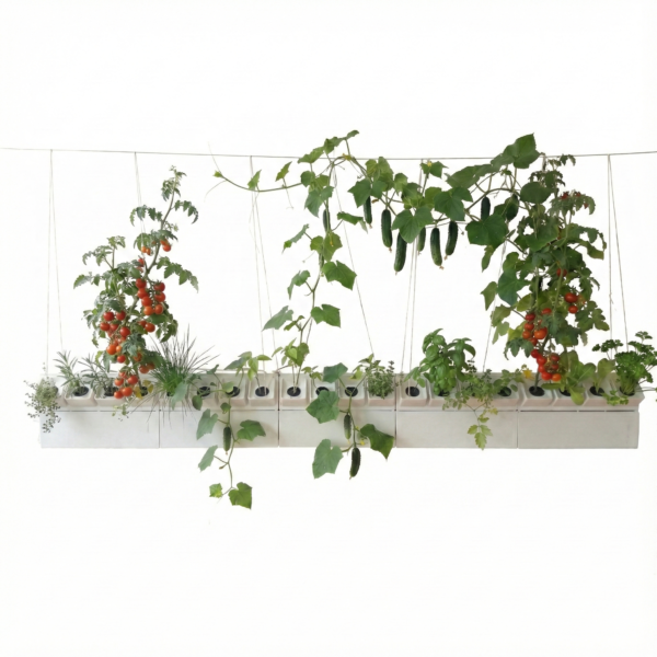 פתרון מושלם לגידול עשבי תיבול, עלים ירוקים, פירות וירקות. המערכת מותאמת במיוחד לבזיליקום, נענע, מגוון חסות, קייל, וכן לגידול מלפפונים, עגבניות ועוד.