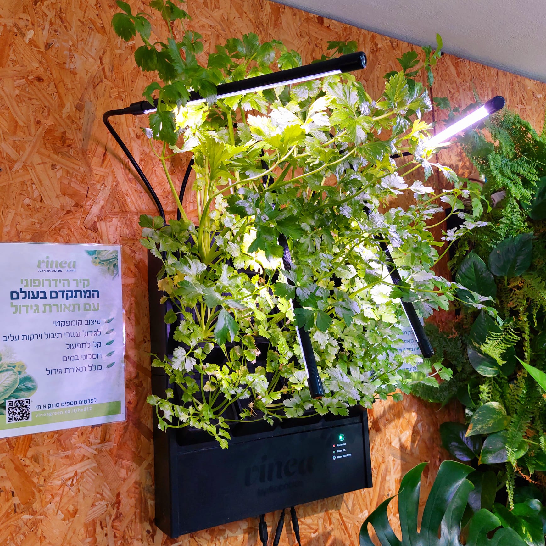 | מידות לאחר הרכבה | רוחב 41 ס"מ, גובה 50 ס"מ (עם תאורה 65 ס"מ), עומק 13.5 ס"מ (ללא צמחים) |